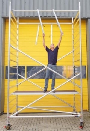 Vanaf 01 januari 2018 moet er verplicht een heupleuning aanwezig zijn voor het betreden van een platform tijdens de bouw en het gebruik van een rolsteiger.
